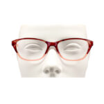 Classic shaped two tone reader. Polycarbonate frame with spring hinge temples and polycarbonate lenses with backside AR coating. Recycled leather slip case included. +0.75 to +3.00 in quarter diopters